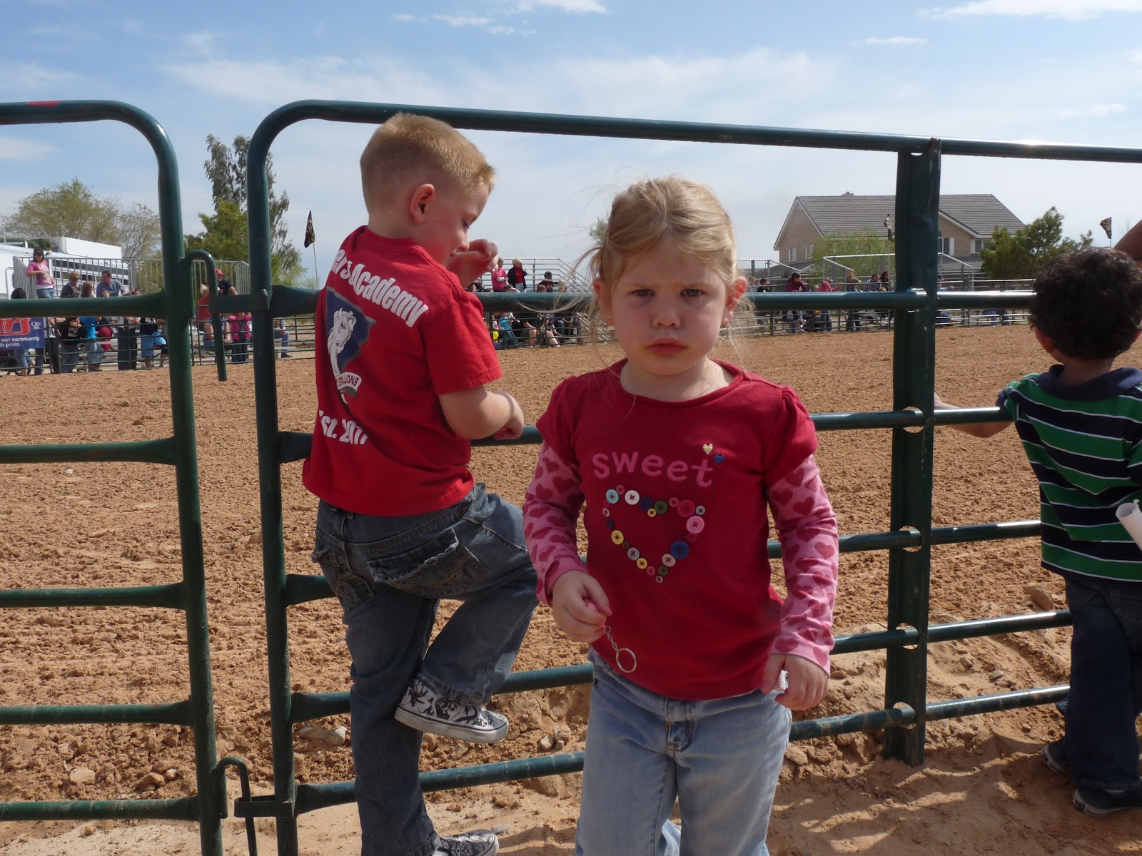 This is where mutton bustin went horribly wrong, Taylor had been being difficult and I swatted her on the butt and told her to knock it off. She actually went to the gate turned around and attacked! (Note her little fist) Needless to say there were some more swats on the butt and time out time. I'd like to go on a quick rant here: What the heck is wrong with children today? If I ever dreamed of hitting my parents I would be way too scared to do it! I would have gotten the beating of my life if I had acted how my children do. I feel I am a rather strict parent, I do believe in spanking, maybe I should step it up a bit and invest in a cattle prong. It seems to work with live stock!